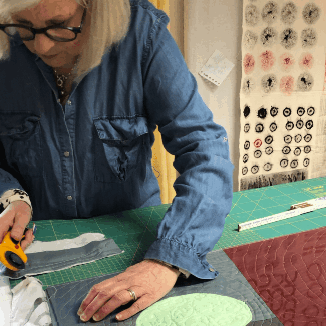 The Dutch-born artist, who lives and works in Albstadt and Amsterdam, studied at the Free Art Academy Nürtingen and with Nancy Crow. She has participated in numerous exhibitions and continually explores innovative and new paths with her work.